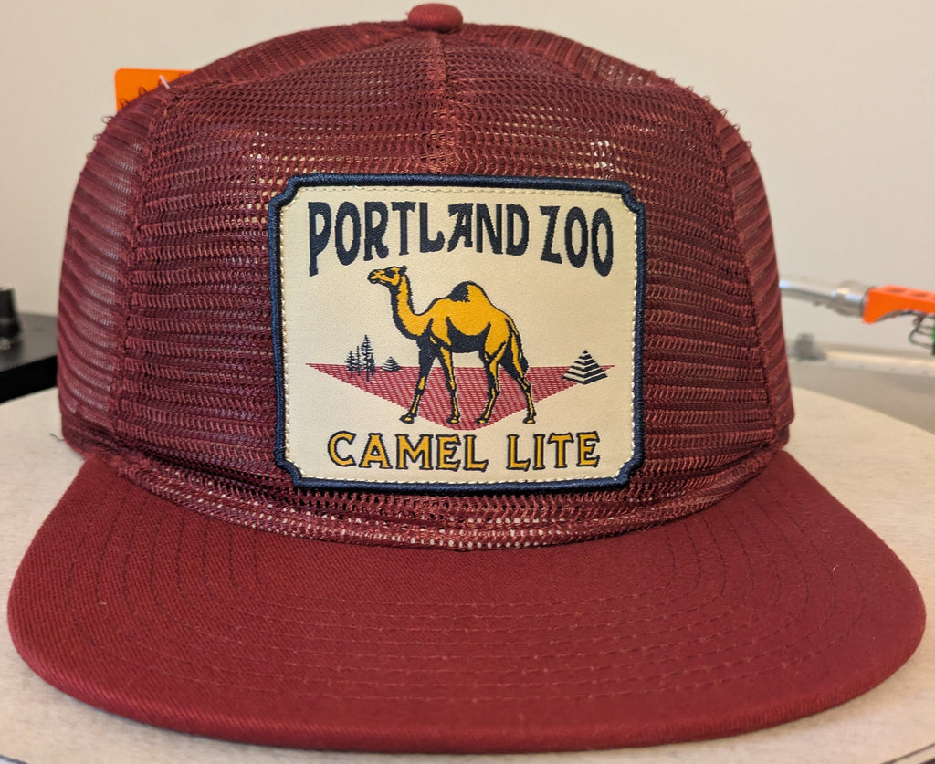 Trucker hat with Portland Zoo Camel Lite Patch with rope
